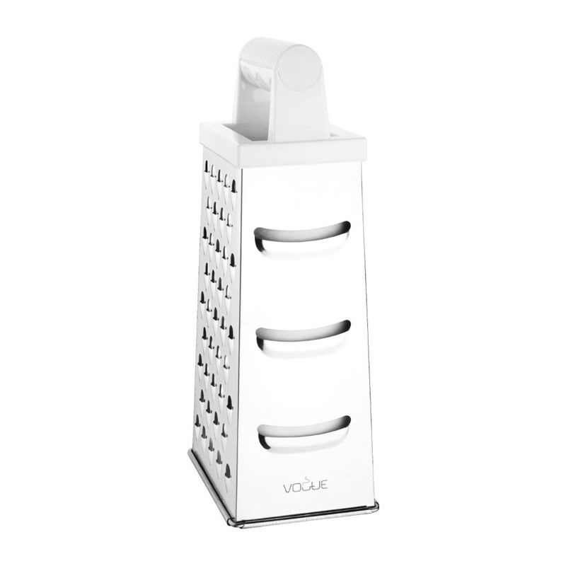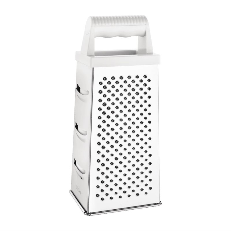 RVS rasp met sterke ABS handgreep die zeer robuust en comfortabel in gebruik is. Met 4 zijden voor 4 verschillende bewerkingen en geschikt voor het raspen van allerlei producten, van kaas tot wortel. Of u deze rasp nu in uw professionele keuken of in de keuken thuis gebruik, de rasp zal een aanwinst zijn en helpt u sneller en efficiënter te werken.